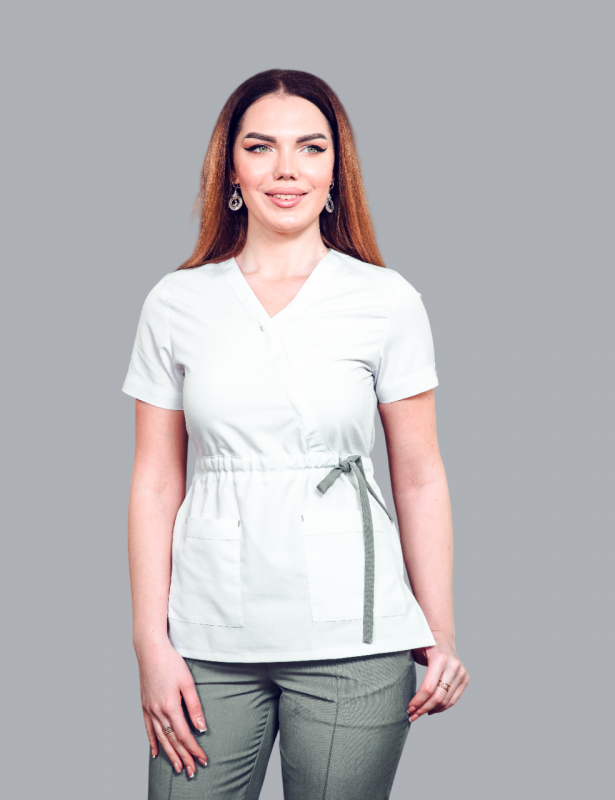 Dizayn: V-yaxalı, kardioloji model (wrap top).